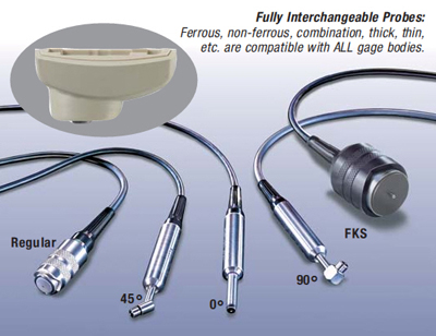 從各種測量范圍和探頭樣式選擇的PosiTector 6000量具的身體和一個(gè)探頭。提供多種選擇的互換探頭。