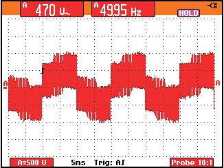 50 Hz馬達(dá)驅(qū)動(dòng)輸出電壓的脈寬調(diào)制信號(hào)的細(xì)節(jié)。1000V,萬用表怎么測(cè)電壓,50 微秒的脈沖即導(dǎo)致某些測(cè)試設(shè)備的不穩(wěn)定。