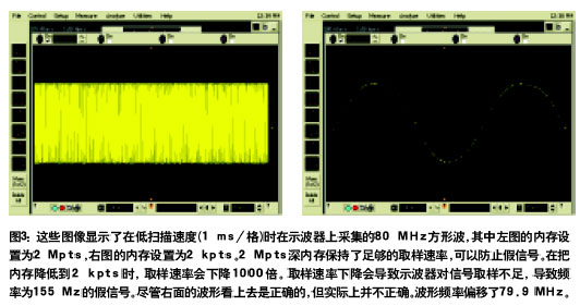 回憶一下第2個(gè)考慮因素中給出的公式示波器的取樣速率至少應(yīng)該是示波器帶寬的4倍。在示波器使用某種數(shù)字重建形式時(shí)最好使用4倍乘數(shù)如sin(X)/X插補(bǔ)。在示波器沒有采用數(shù)字重建形式時(shí)乘數(shù)實(shí)際上應(yīng)該是10倍。由于大多數(shù)示波器采用某種數(shù)字重建形式4倍乘數(shù)應(yīng)該足夠了。