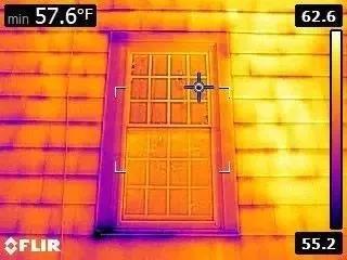 紅外熱像儀能夠快速檢測到流動的氣流密封不嚴的區(qū)域就可以很方便地被加以識別并且在完成下一步工序之前解決問題從而避免由潛在的施工問題變成花費昂貴的棘手問題。